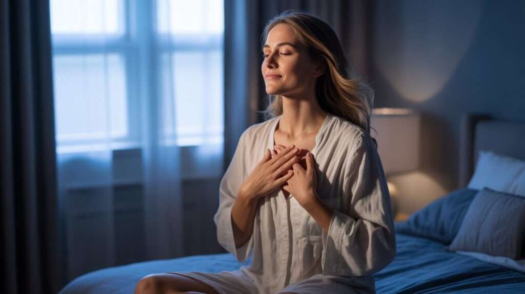 So next time, when your eyes open in the quiet darkness, instead of reaching for your phone, place your hand on your heart and say: