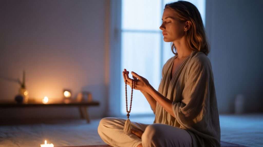 Perform 108 repetitions or simply chant until your mind feels light. The vibration of sound merges with the stillness of dawn, amplifying your inner peace.
